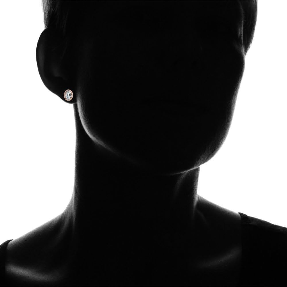 ICE GEMS Birthstone Stud Earrings for Women, 925 Sterling Silver Yellow Gold, Rose Gold Flashed, Oval Halo Birthstone Earrings with CZ Accents, Genuine/Created/Simulated Gemstone, 11mm x 9mm